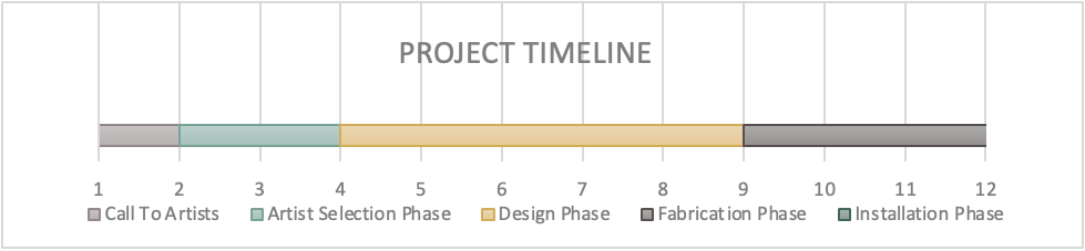 Public art project timelines follow the schedule of the larger improvement. Dates subject to change.